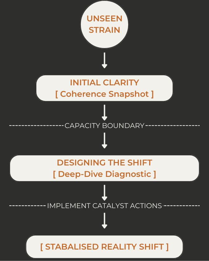 The Coherence Snapshot establishes the organisation’s current coherence state and reveals whether interference resolves once it is made visible.